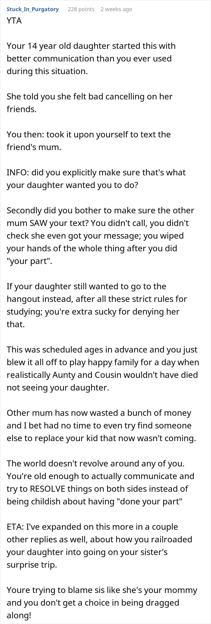 One parent shared how they ended up taking their 14-year-old daughter on a family getaway—which happened to be at the same time as a friend’s birthday party she had been looking forward to for a month. What started as a scheduling conflict quickly turned into an unexpected drama, with some parents backing the author’s decision and others saying it wasn’t fair to the birthday girl. Keep reading to see how it all unfolded!