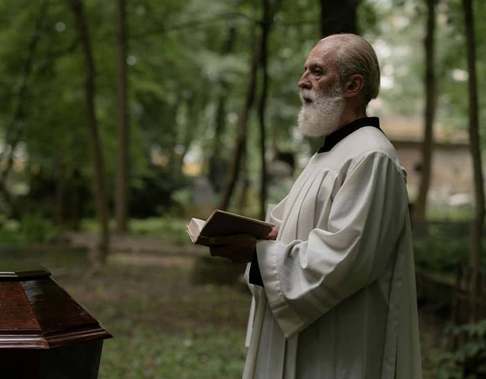 The ill-informed priest consistently calling the deceased Julie
