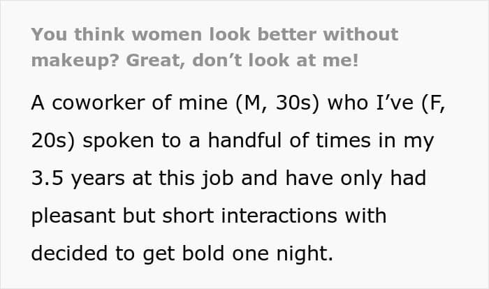RELATED:A man thought it was appropriate to tell a coworker she looks better without makeup