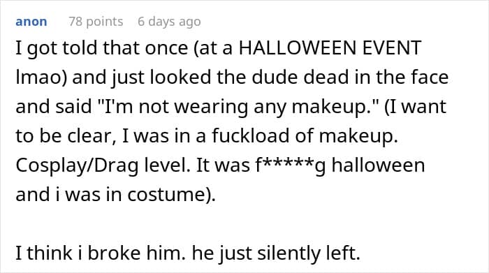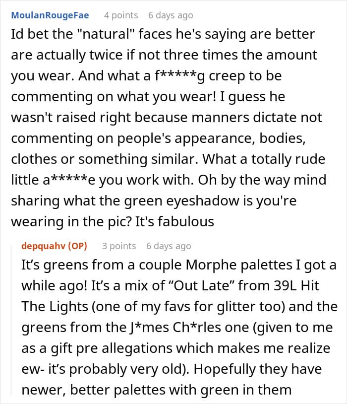 Men often have strong opinions about women wearing makeup, and some, like this woman’s coworker, aren’t afraid to express it. Offended and angry, she doubled down and started wearing makeup every day. After reading her story, many netizens started debating why some people think commenting on others’ appearance is so normalized.
