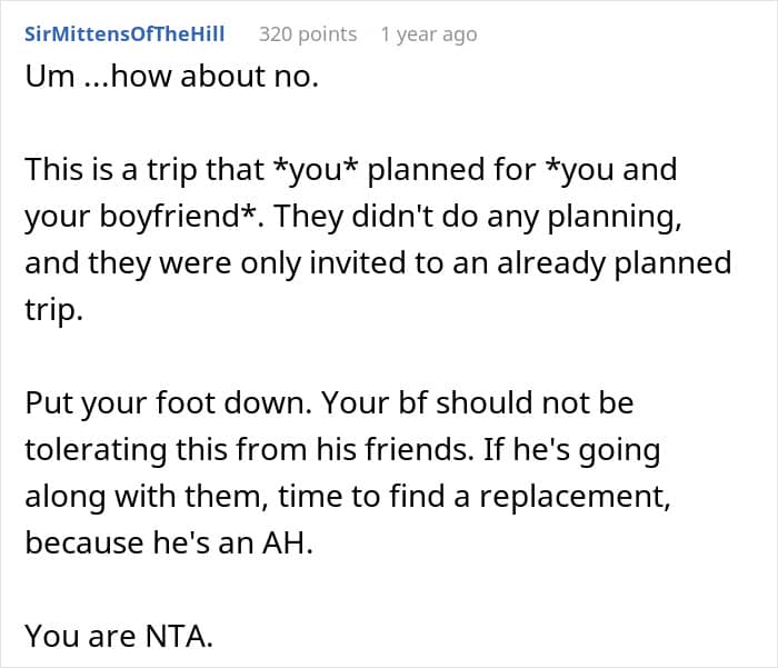 One woman shared a story on Reddit detailing how her boyfriend’s friends decided to uninvite her from a ski trip she helped plan after they decided that it should just be for the guys. Below, you’ll find the full story, as well as some of the replies readers left her.