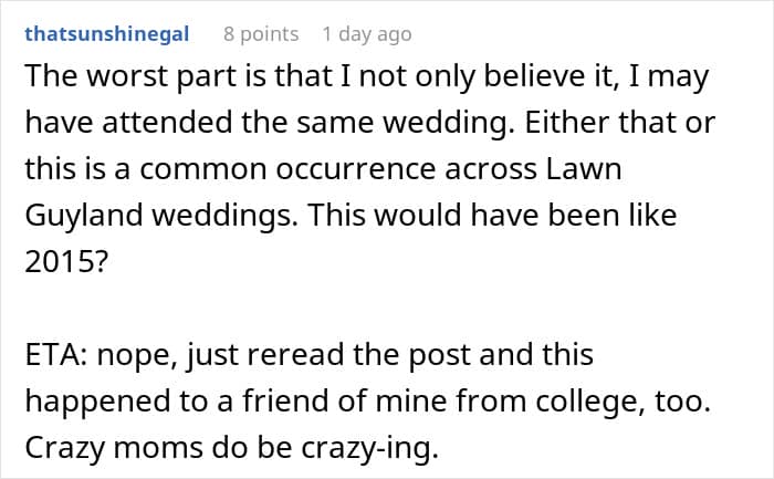 But one mother decided to sabotage her daughter’s wedding dessert by hijacking it and attempting to replace it with a cheap, underwhelming alternative. Below, you’ll find the full story of this wedding drama that was recently shared on Reddit, as well as a conversation with Jhona Yellin, Editor at Bespoke Bride.