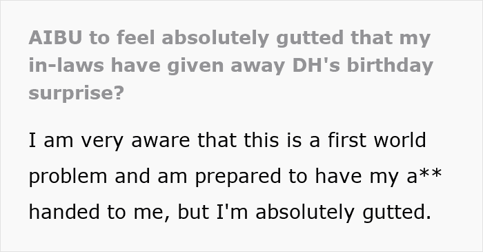 One woman’s attempt to make her husband’s big day extra special hit a snag when his parents totally ruined the surprise