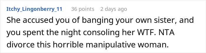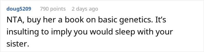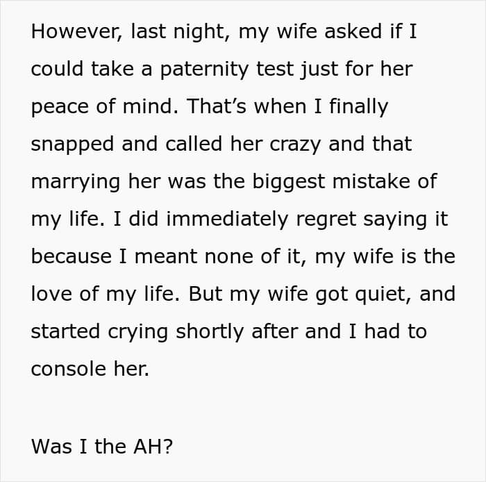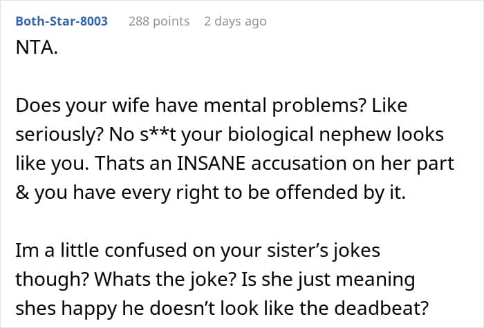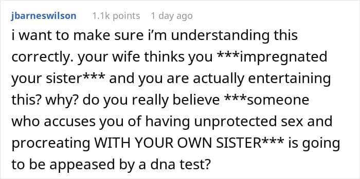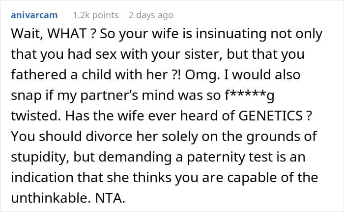 The man initially posted his story on AITAH because he’d snapped at his wife for even suggesting that he had been unfaithful and fathered his sister’s child.