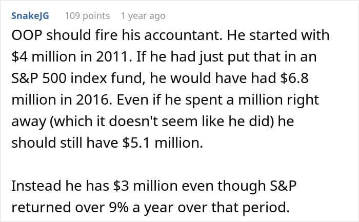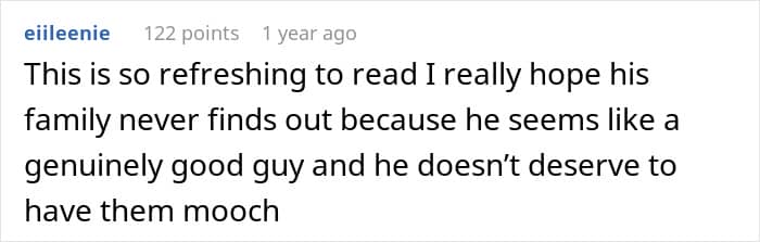 A couple of years back, the poster won the lottery and became a millionaire but kept it a secret from his toxic family as they would try to mooch off him