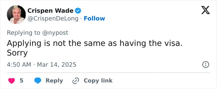 Her work visa had been revoked back in November 2024