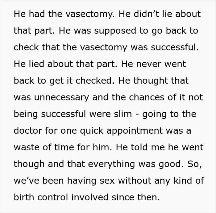 But what happens when these plans go the exact opposite route? This couple didn’t intend to have children, and they finalized their decision when the man had a vasectomy. But to their surprise, the woman ended up getting pregnant.