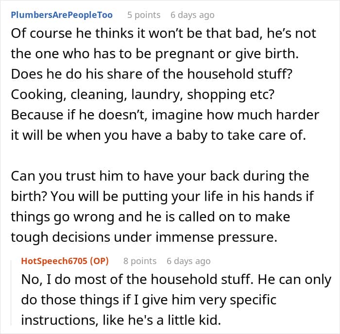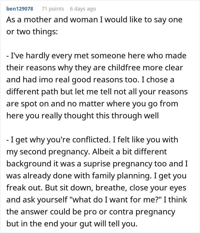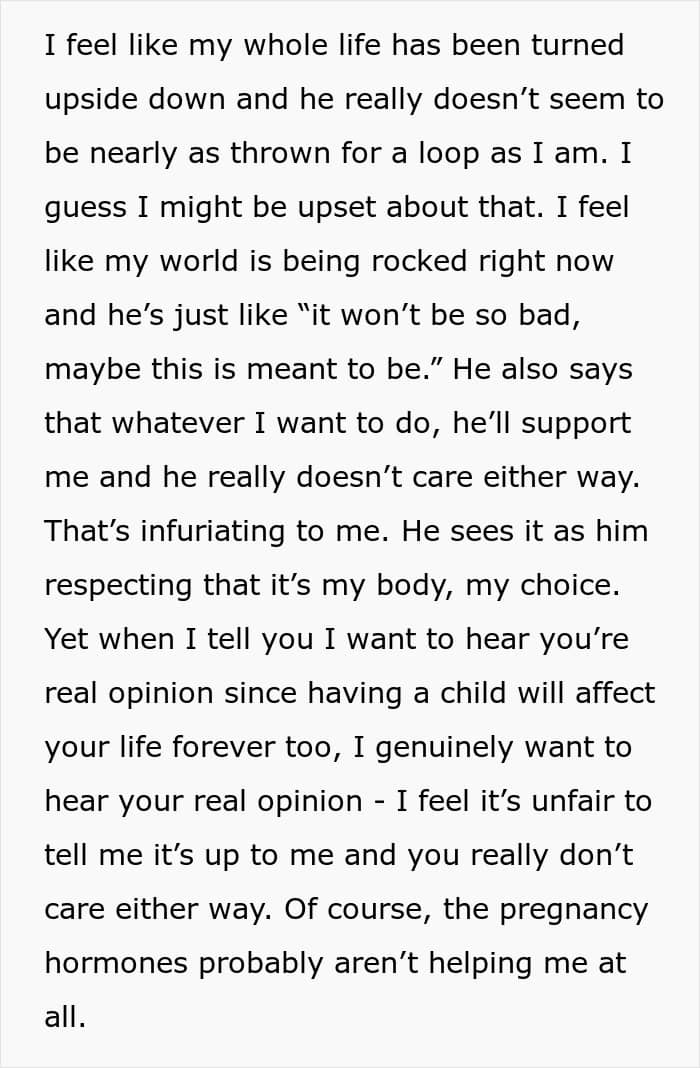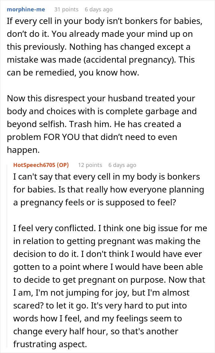 The wife experienced the emotions mentioned above, even doubting her husband’s credibility as a father-to-be.
