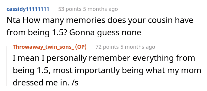 Read on for the full story and how the members of the AITA online community reacted to this rather peculiar accusation. Don’t forget to share your opinion in the comments. And if you happen to have twins (or know someone who raised a pair), we’d especially love to hear from you, Pandas.