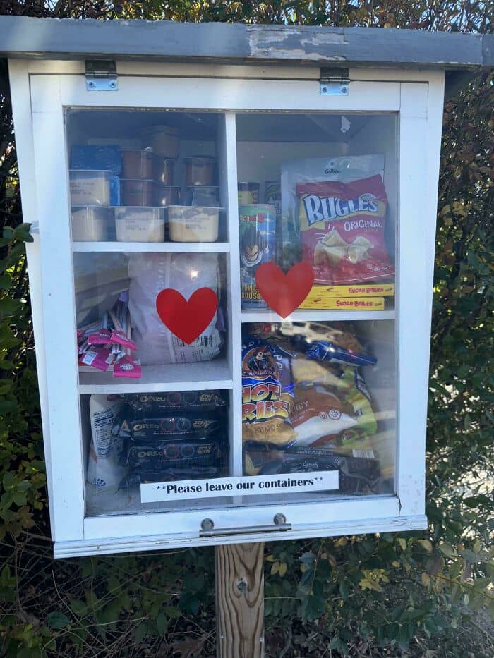 Anyone else constantly filling up their local little food pantries? Star Wars oreos, pixie sticks, hot fries, chips, energy drinks, pasta, and candy today! (I didn’t donate the baby food- that ish looks gross) Definitely recommend for all these pallets of good boxed and canned food we find!