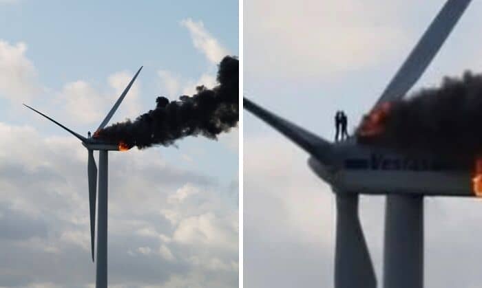 #7 Two Engineers Died When The Windmill They Were Working On Caught Fire. This Might Be The Last Picture Of Them
