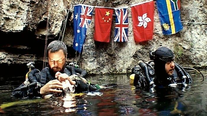 Shaw recorded his dive with an underwater camera, which allowed researchers to determine that he suffered from respiratory issues due to the high pressure. Shaw ran into difficulties when the body unexpectedly began to float. Shaw had been advised by various experts that the body would remain negatively buoyant because the visible parts were reduced to the skeleton. However, within his drysuit, Dreyer’s corpse had turned into a soap-like substance called adipocere, which floats. Shaw had been working with both hands, and so had been resting his can light on the cave floor. The powerful underwater lights that cave divers use are connected by wires to heavy battery canisters, normally worn on the cave diver’s waist, or sometimes attached to their tanks. Normally he would have wrapped the wire behind his neck, but he was unable to do so; the lines from the body bag appear to have become entangled with the light head, and the physical effort of trying to free himself led to his death. Three days later, both of the bodies that had become entangled in the lines were pulled up to near the surface as the dive team was retrieving their equipment.