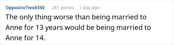 Our Redditor has been married to his wife Anne for 13 years. In today’s swipe-right world, that’s practically a lifetime. In the beginning, it was all roses and butterflies. Anne was his ride-or-die, the one who could lift his spirits with just a few words. But somewhere along the way, those butterflies turned into bats, and Anne started showing her true colors.