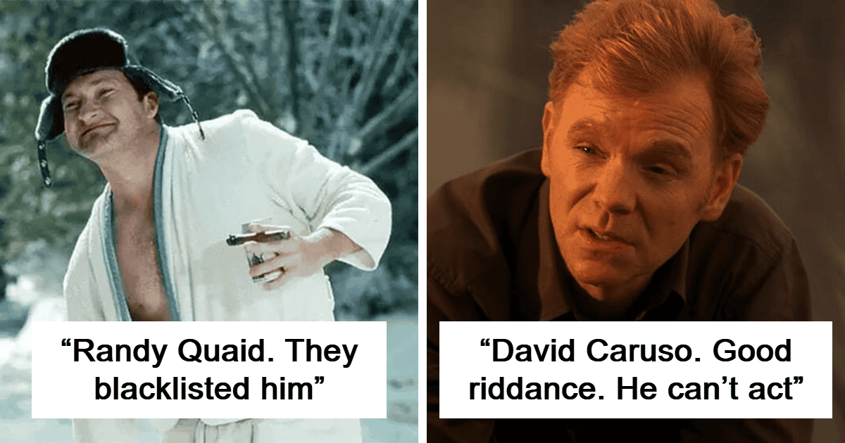 David Caruso. Good riddance. He can’t act. He always looks like he’s trying to hold in a fart. His voice is fingernails on a blackboard.