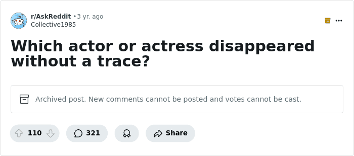 People online share examples of celebrities that were household names at one point and suddenly just disappeared from the public eye. So get comfortable as you scroll through, upvote your favorites and be sure to add your own thoughts in the comments below.