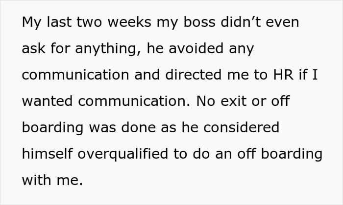 However, what had made it so frustrating for the OP was that instead of a proper offboarding process, the manager completely avoided them. No handover, no final instructions. Just radio silence.