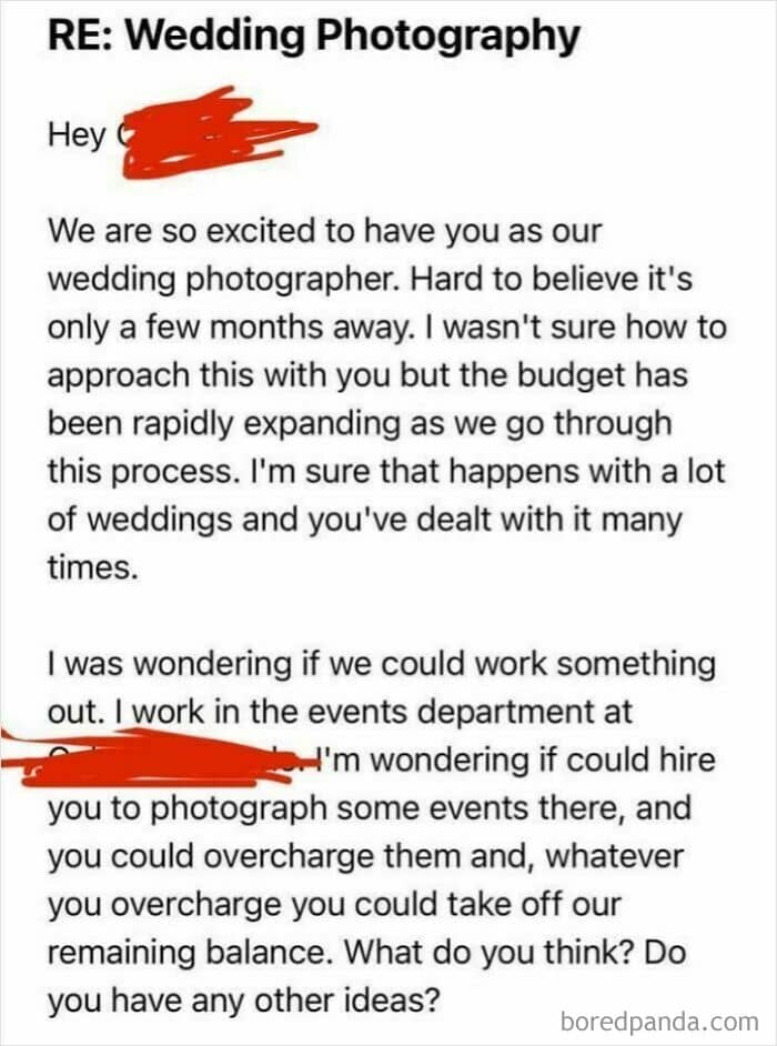 #11 Bride Tries To Force Friend To Do Photography For Her Wedding, Insists That He Pays Her For The Privilege