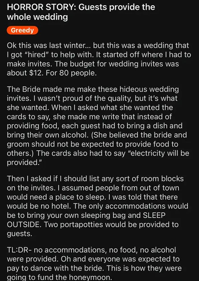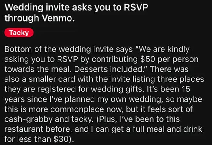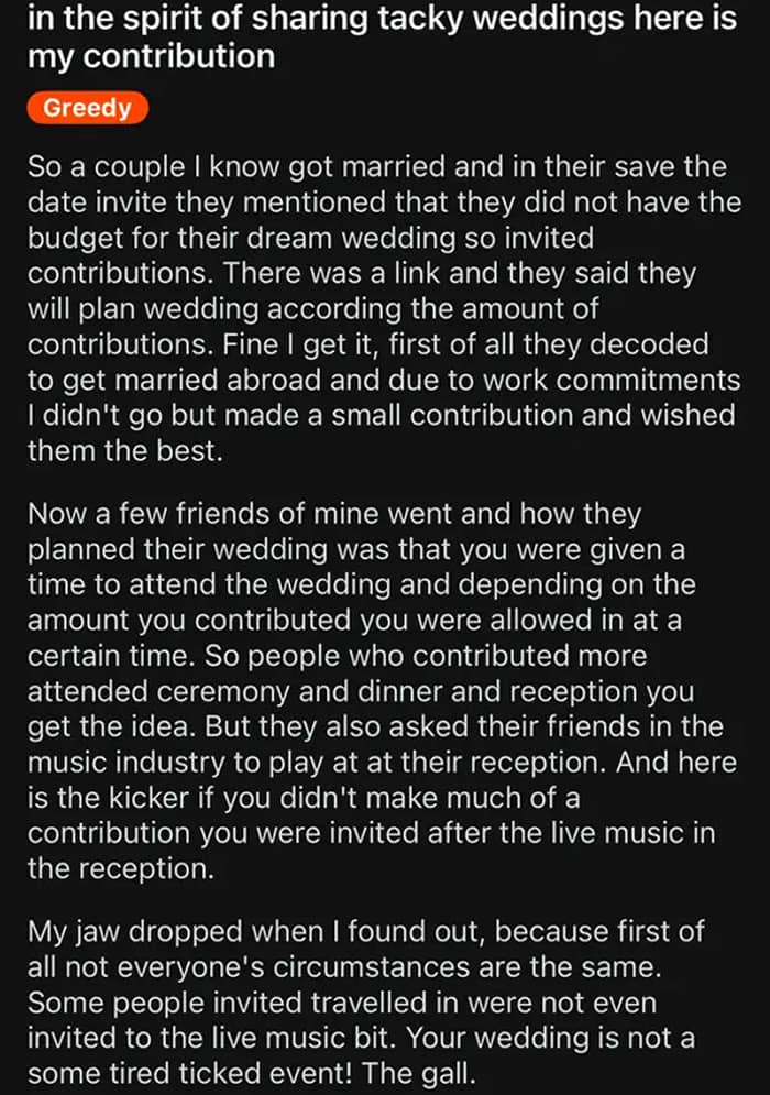 #40 Bride Cancels Her Wedding Because Her Guests Didn’t “Donate” A $1,500 Each To Fund The Event