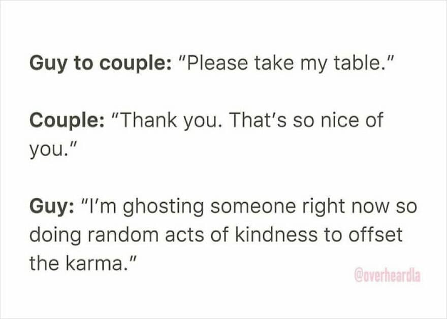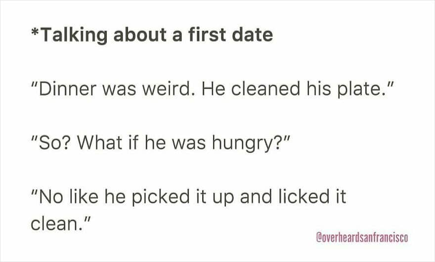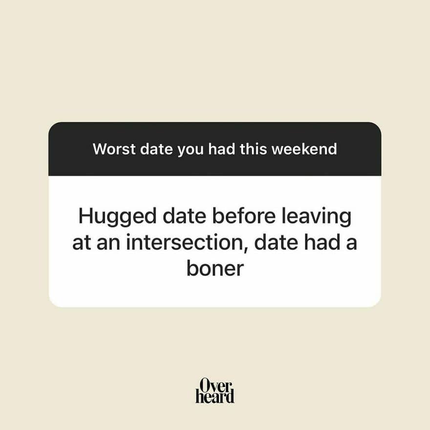 “You’re just searching in the wrong places!” you might say. Then, by all means, if you’ve got better spots, let us know! Because if you’re not convinced that modern romance is a battlefield, just take a peek at these conversations from real dates shared by the Instagram account ‘Overheard Dating.’ They’re… well, just scroll down and see for yourself!