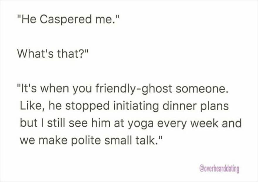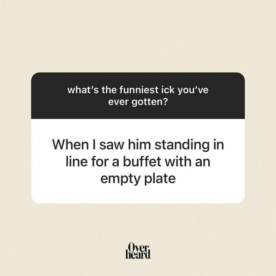 With over 386K followers on Instagram, ‘Overheard Dating’ collects interactions people have eavesdropped on or experienced online. And since the submissions are anonymous, it keeps things light-hearted and guilt-free.