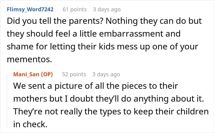 A lot of folks online sympathized with the poster and tried to comfort her as it was something very special for her. Many of them came up with different suggestions on how she could either get rid of the Sharpie marks or how she could ask guests to sign the pieces again. Some also said that she should talk to the parents of the kids, and she said that she did, but it didn’t make a difference.