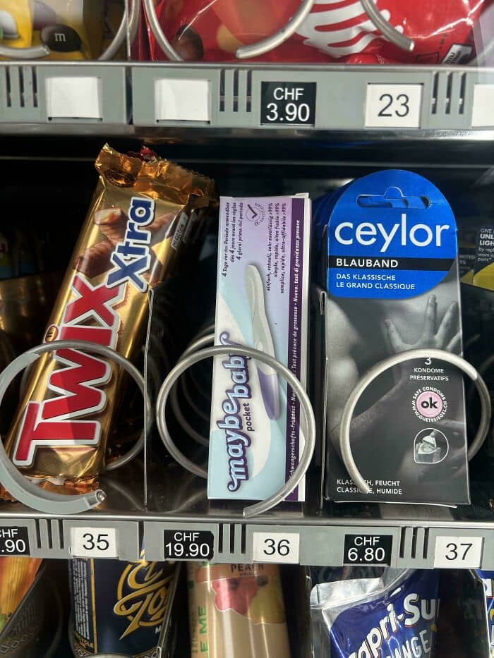 #38 In Switzerland, In Most Vending Machines There Is A Pregnancy Test Called Maybe Baby