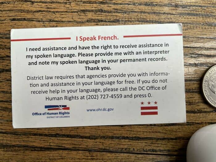 #62 In Washington, Dc, You Can Ask Local Agencies To Speak Your Language. We Have Cards You Can Give To Government Workers To Remind Them