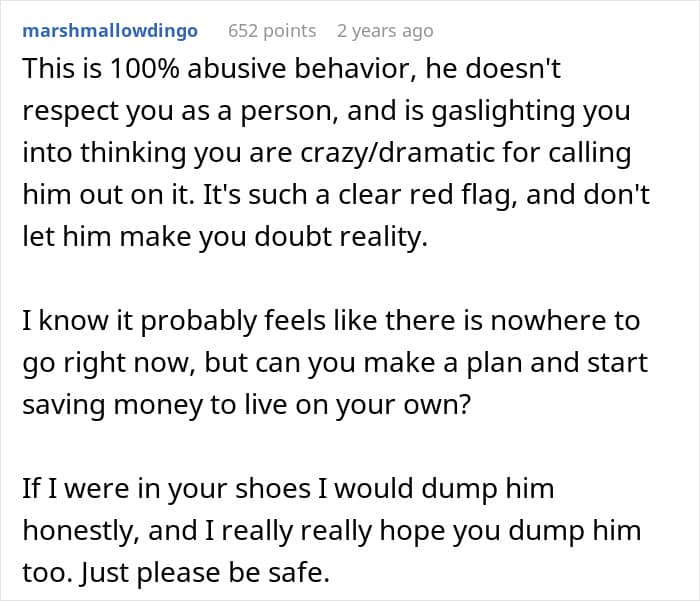 From what OP tells the community in her post, it would seem as though she’s in an abusive relationship. At the very least, her boyfriend has no respect for her and her needs, echoing her abusive past. So, what’s her best way out?