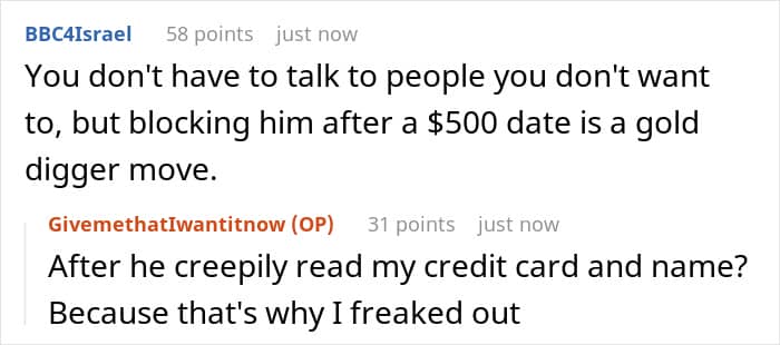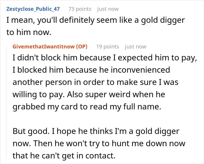 Similarly, Redditors had different takes on the situation, while most people agreed that the man’s behavior of playing games to find out her last name or if she would be willing to pay was off-putting, they also noted that it possibly wasn’t so out of line that she was warranted to block him, instead of having a conversation or at least writing a message. Others similarly suggested the woman could have been more forgiving.