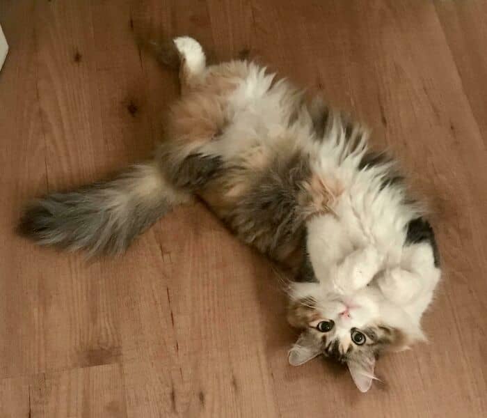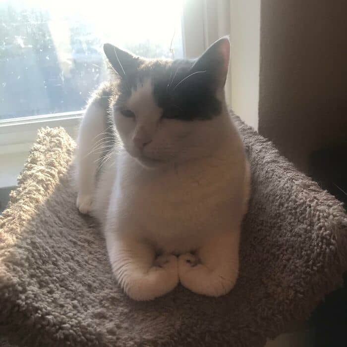 Claudette advocates the use of positive reinforcement and behavior-shaping techniques to stimulate cats into wanting to learn. When we asked her why cats like sitting in a loaf position or with their feet curled, she said “it calms them and is a sign that they trust their environment, including people or other animals that may be around. It’s also a sign that they’re content and happy.”