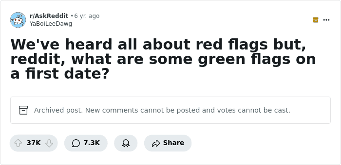 “I think I’d been browsing the Ask Reddit sub a few days in a row, and I kept seeing posts asking about red flags,” Liam noted. “I thought ‘enough is enough, let’s hear about what you SHOULD look for on a first date.'”