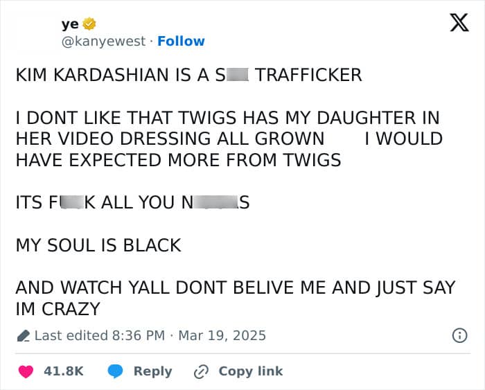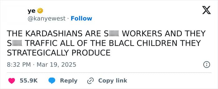 On Wednesday (March 19), Kanye took to X (formerly Twitter) to accuse the Kardashians of “strategically producing” Black children to traffic them.