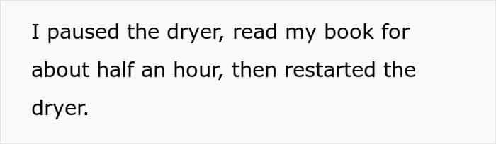 Do you think this is the end of it? Of course not! The author of the post stopped the dryer again and, after about half an hour of quiet reading, turned it on once more. The neighbor came in, saw that the display showed another thirty minutes – and, it seems, having realized everything, this time she spent the rest of the time in the basement.