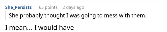 The woman told them that she was in a hurry, so… But the author already had a brilliant petty revenge plan in their head