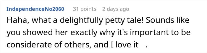 People in the comments were in a complete awe of this story, praising the author for being so smart, witty and petty