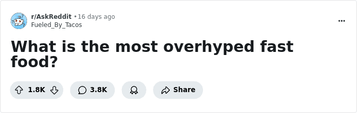 Interestingly, today the thread has almost twice as many comments as upvotes, which means the discussion has been quite lively. So, let’s find out together which fast foods people think are really overrated and overhyped.