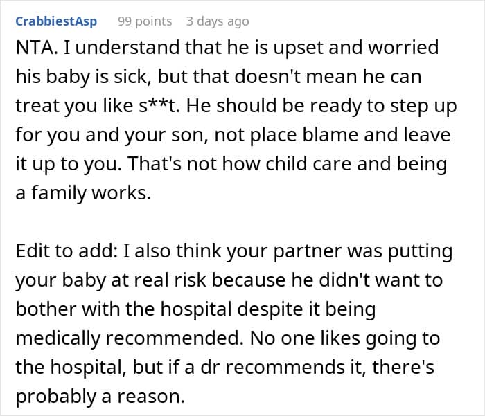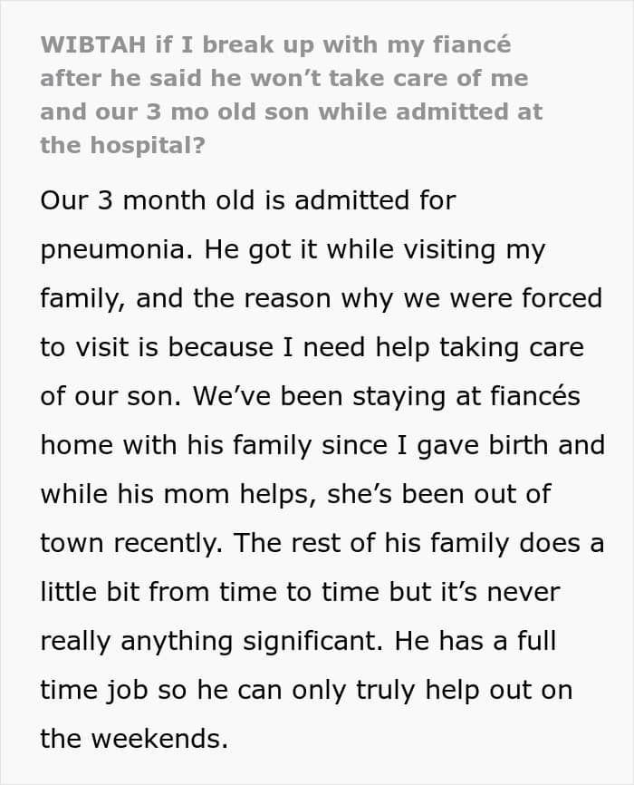 When things got a bit much for one new mom, she decided to spend a few days with her parents so that they could help care for the baby while she rested for a little bit. But it came at a big cost. Her 3-month-old contracted pneumonia from one of the grandparents, and landed in the hospital. Her fiance is now blaming her and their entire relationship is at stake.