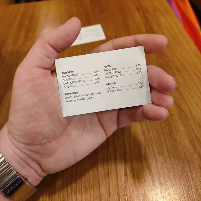 #46 This Restaurant Only Prints Their Very Short Menus On Business Cards