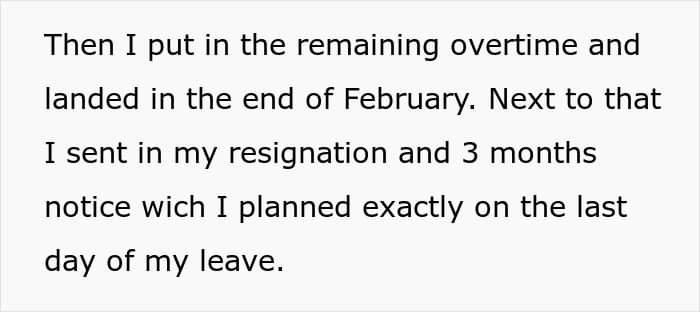 Without getting too complicated, OP essentially divided up his vacation time and overtime into alternating segments to form a continuous string of I’ll see you in 6 months, don’t let the water cooler get lonely. To add insult to injury, he put in his resignation as the cherry on top, i.e. the day following the end of his semi-sabbatical.