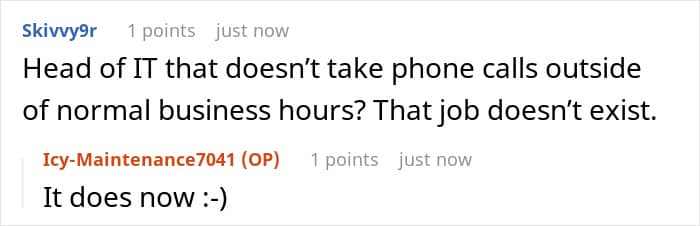 Others were surprised by the whole situation of there essentially being no onsite backup for OP. It’s a disaster waiting to hap… oh… yeah, right, right.