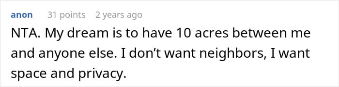 For this redditor, a quiet remote location seemed like the more attractive option, too. That’s why they purchased two lots and made it into one large piece of land, so they have plenty of space. But soon enough the neighbors came asking to use said space, to which the landowner said no – a decision that split the netizens into camps. Scroll down to find the full story below.