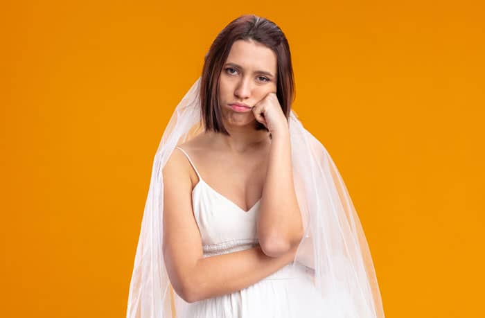 Her elegant dress now came with a slit so high it showed off her undies. That’s a no-go zone at any wedding, let alone your sister’s. Add to that some huge skull jewelry, punk rock boots, and super-dark eye makeup and you’ve got yourself a pretty inappropriate wedding look.