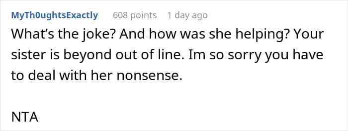 But this decision didn’t go down well with the rest of the family. His parents called him “heartless” while the infamous sister had the audacity to state that he was tearing the family apart over a “little joke”. Feeling conflicted, OP asked netizens if he was wrong for doing what he did.