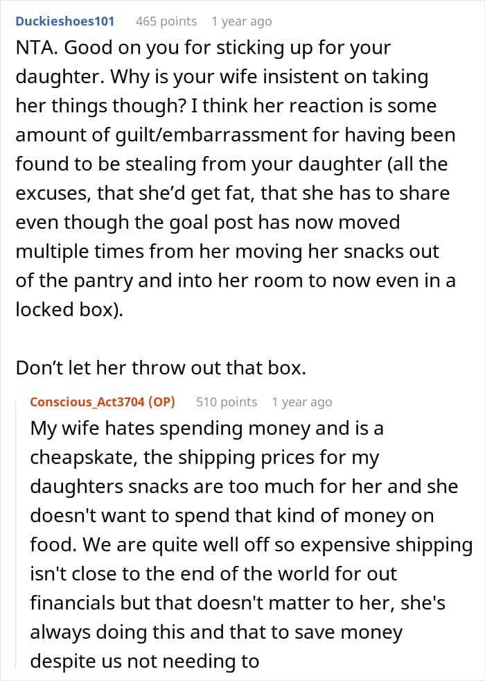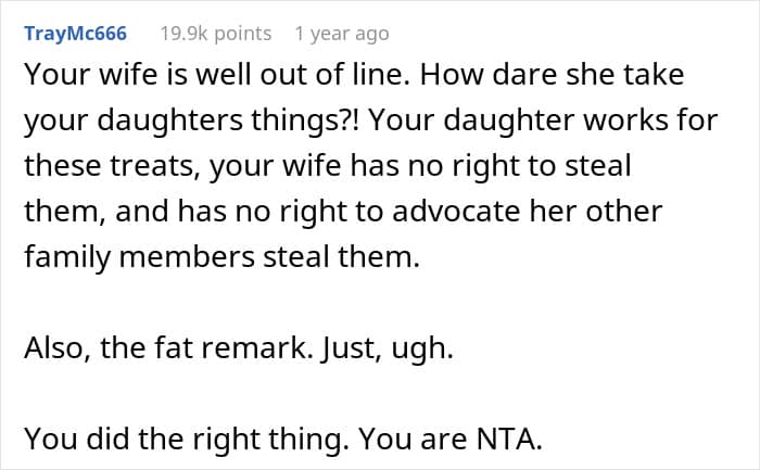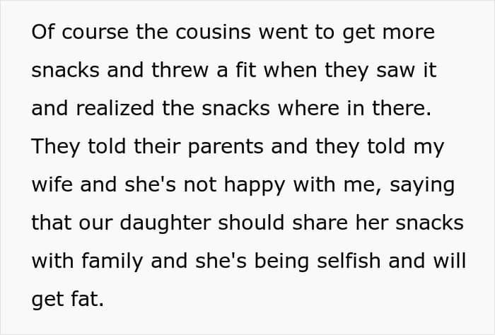 Redditors deemed the man not a jerk, saying that he did the right thing. Personal things are important, even though it’s just snacks in this case. It’s great that the dad has his daughter’s back, but why are snacks so sought after in the first place?