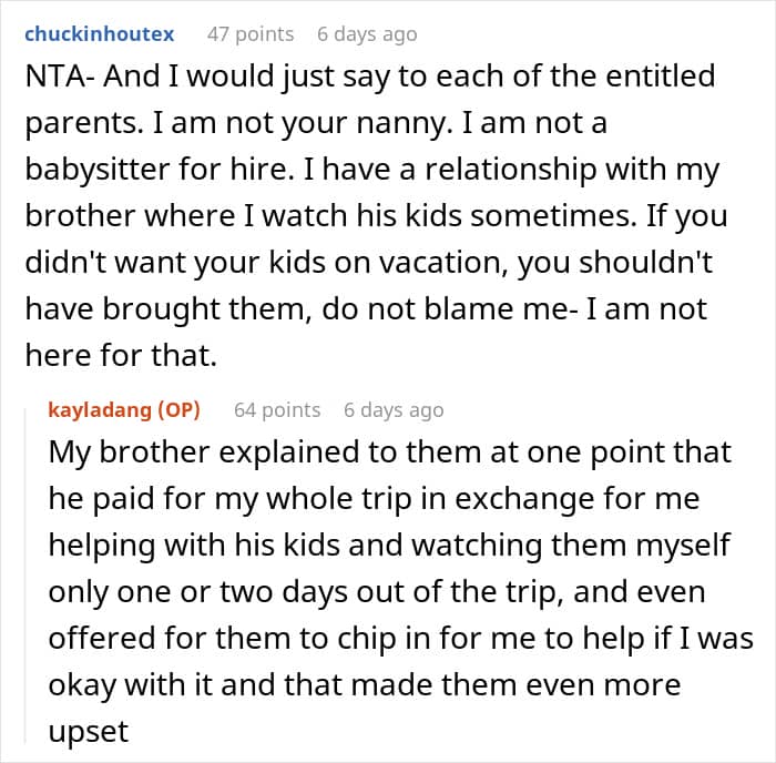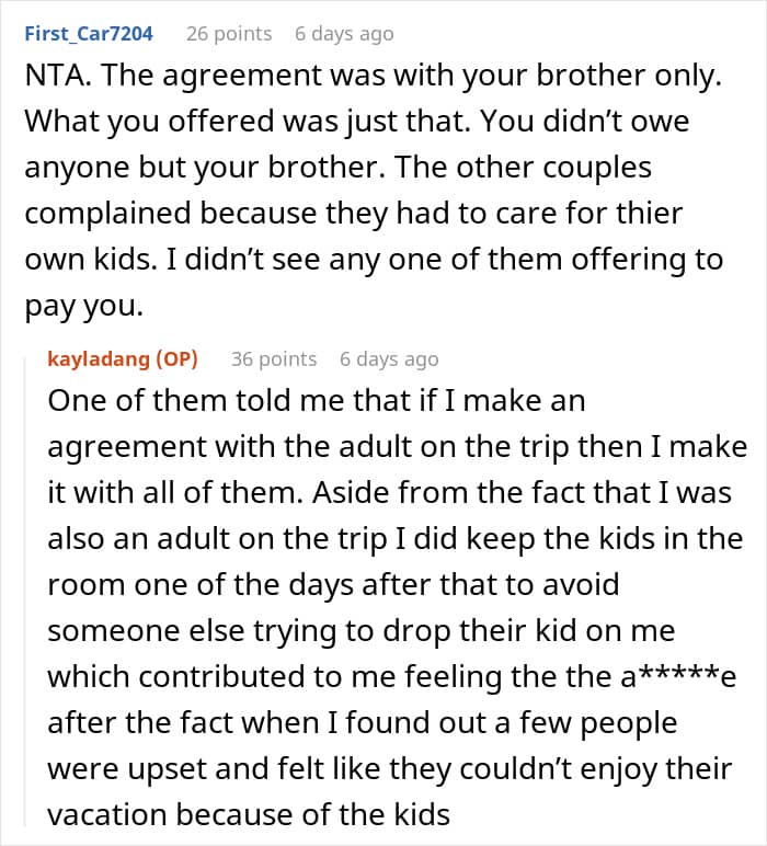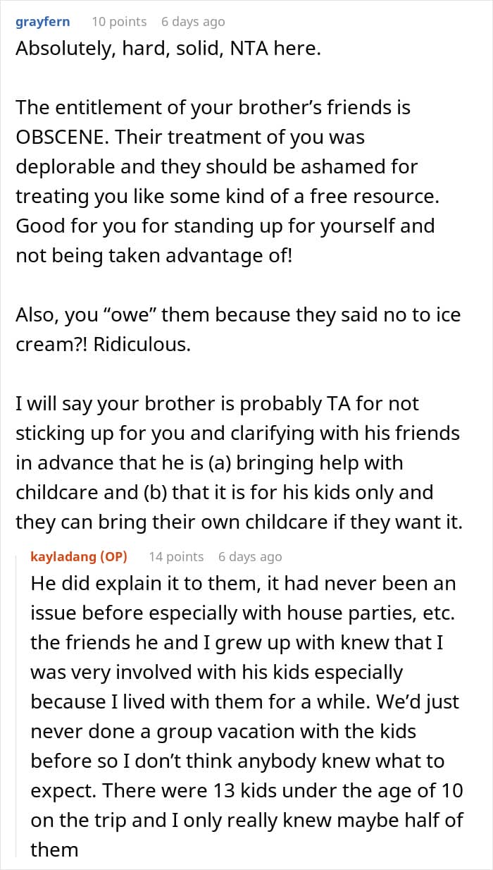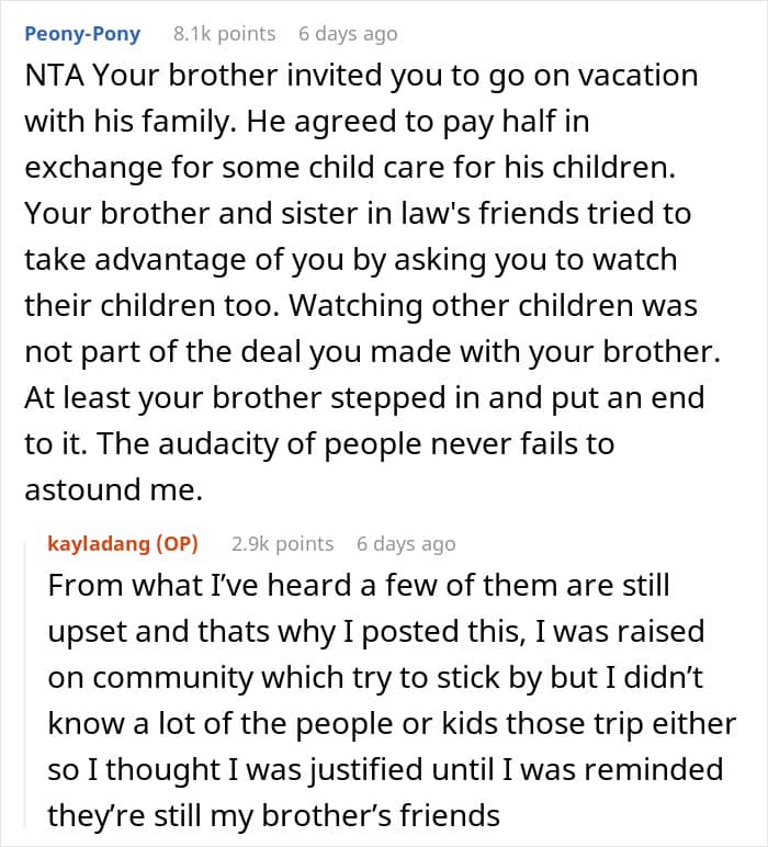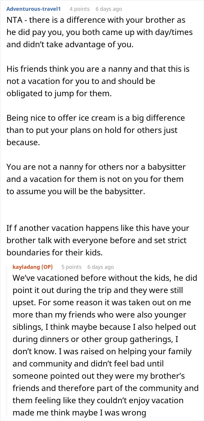 This woman recently shared how her brother’s friends tried to take advantage of her on their group vacation by leaving their kids with her without really asking. She wasn’t going to give in so easily, presenting them with a hard no, which inevitably caused tension for the duration of the trip.