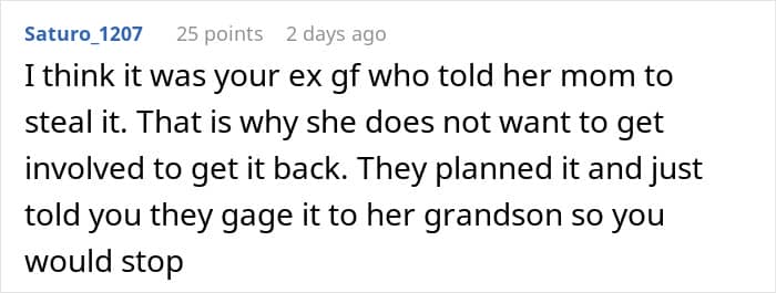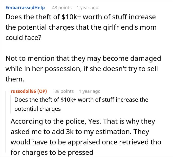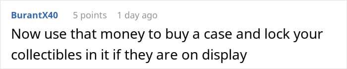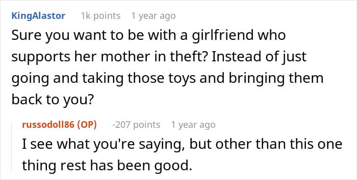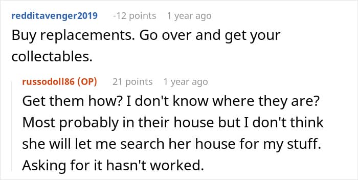 This redditor, for instance, had a collection of Transformer toys, some dating as far back as the 1980s. That was until his girlfriend’s mother took it without asking and gave it away to her grandson. Needless to say, the owner of the toys wasn’t too happy about it, but his girlfriend said she would end their relationship if he reported the theft.