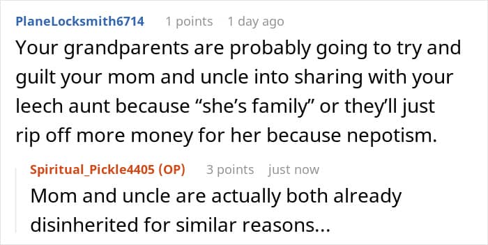 Looking at this, the Redditors were right to warn OP that the toxic family might start a conflict when they find out about the will. Some people also mentioned that the grandparents shouldn’t have encouraged them in the first place. They should’ve stopped offering them everything when they sensed that it was getting too much.