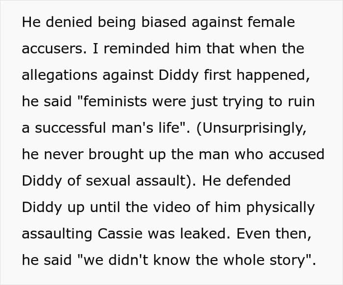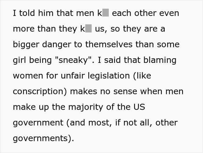 We got in touch with the woman in the story and she was kind enough to give some more details. First of all, we wanted to hear her opinion on why the story went viral. ” To be honest, I don’t know why people found this so engaging. When I posted it, I was hoping maybe 20 people would reply so I could get some perspective. When I woke up to see that thousands of comments were on the post, I assumed it was a glitch. The comments I found helpful were from other people who’d gone through similar things. Some had lost partners or family members to the MRA bs. Some were just abuse victims who told me that he’s showing signs of the early stages of having an abusive partner. He never physically abused me, but it’s scary to think that, if I’d stayed, it may have escalated to that.”
