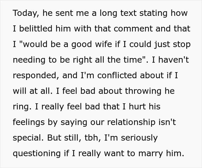 A woman decided to reconsider her entire engagement after her fiancé would not stop making deeply misogynistic comments. We also got in touch with the woman who shared the story and she was kind enough to provide some more details.