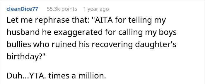 These two boys unfortunately didn’t, ruining stepsister’s birthday